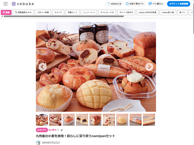 並川さん:毎朝、その日に販売する分のパン生地をつくり、開店に合わせて陳列できるように焼き上げているのですが、天気などの影響でどうしても売れ残ってしまうパンが出てくるんですよ。そんなロスパンを有効活用しようと2025年3月から「rebake」というパンのお取り寄せ・通販マーケットサイトに登録。冷凍保存したロスパン10個ほどを1セットにして、お得な価格で販売しています。