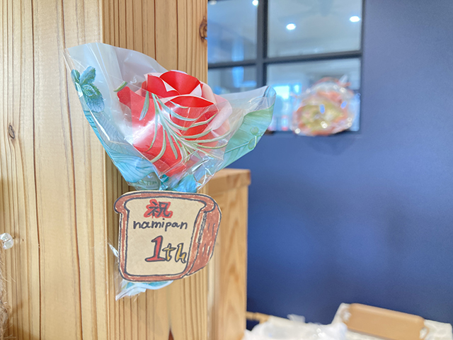 並川さん:もうひとつは、開店1周年イベントでの出来事。ご家族でよく買いに来てくださる常連さんがいらっしゃるんですけど、小学生の娘さんが折り紙で作ったお花をプレゼントしてくれたんです。ニコニコしながら「1周年おめでとう」って持ってきてくれた姿に感動して、スタッフと一緒に泣いちゃいましたね。そのお花は今でもレジのところに大切に飾っています。