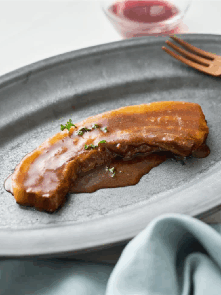 川中さん:創業者が割烹の一品料理として出していた、デミグラスソース味の角煮をベースに考案しました。角煮に染み込んだ醤油ベースの秘伝のタレとコクのあるデミグラスが絶妙にマッチング。ワインとの相性もとても良いので、ワイン愛好家の方にはぜひ試していただきたいマリアージュとなっています。
