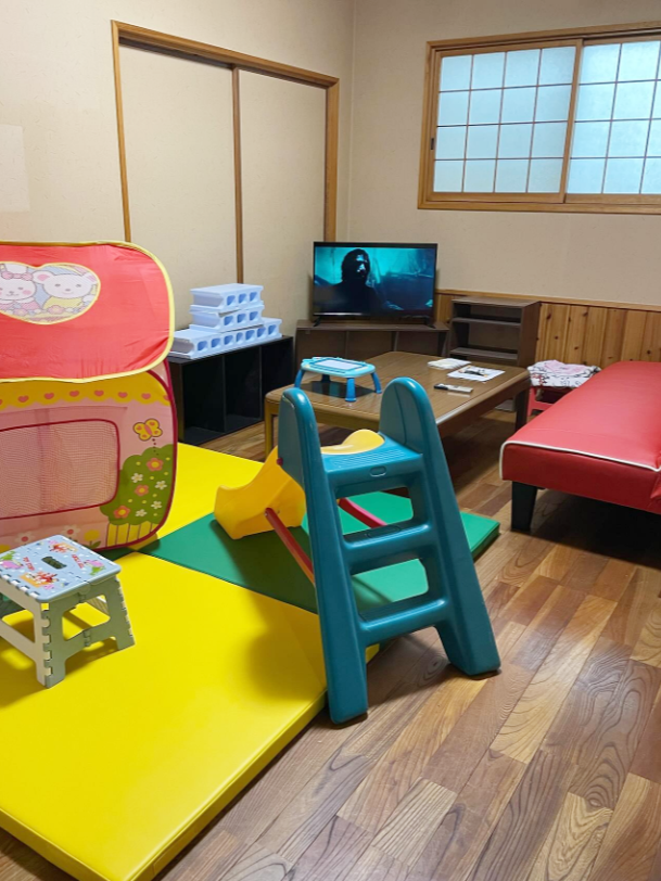 成田さん:店内にキッズルームを完備していること。テレビでYouTubeを見たり、トランポリンで遊んだりと、子どもたちが退屈せずに過ごせるように工夫しています。一部屋まるごと使ってキッズルームにしているので広々としていますし、隣の個室との間にあるふすまを開ければ、大人はワイワイと宴会を楽しみながら遊んでいる子どもを見守ることができるのが特徴です。