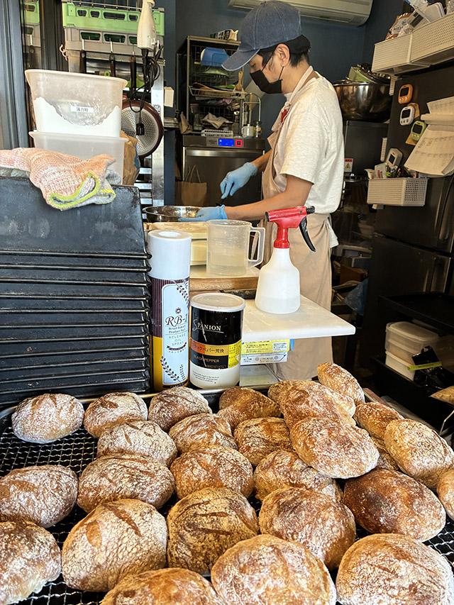 智浩さん:全体の6割から7割くらいですね。開店してからも手は止めず、お昼のピーク時に向けてパンの成形と焼成を繰り返していきます。大体11時半から12時くらいに全てのパンが焼き揃うイメージでしょうか。ある程度パン作りのめどが立った段階で、妻には厨房から接客や販売の方へ回ってもらっています。