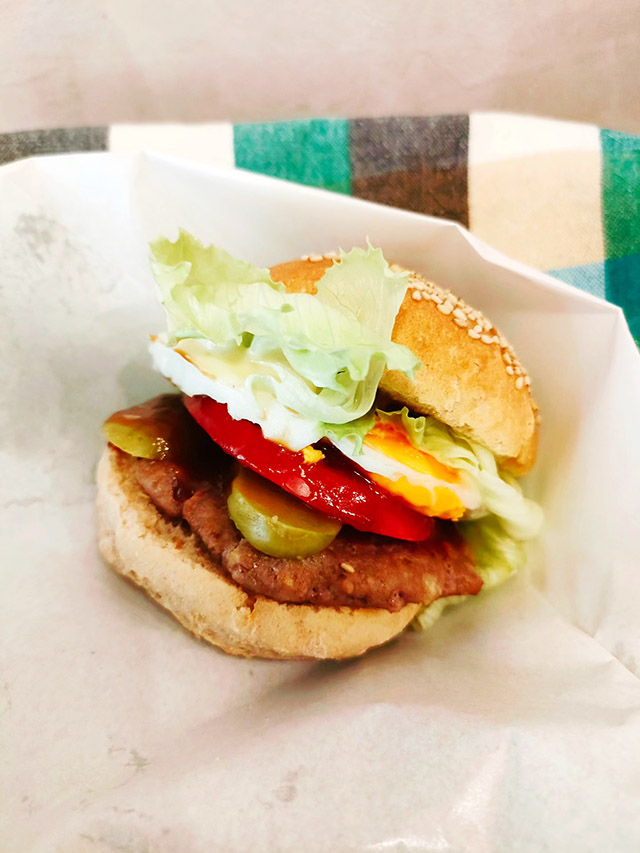 麻衣子さん:パテと甘めのマヨネーズの味はしっかりと受け継ぎつつ、私たちはパン屋として「バンズ」にとことんこだわりました。ジューシーなお肉に負けないよう、生地にライ麦を配合して、サクサクとした歯切れの良い食感に仕上げています。注文が入ってから調理するので大変ではありますが、手づくりパン屋としての矜持を込めた、私たちにとっても思い入れの深い一品です。
