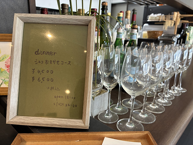 小島さん:ディナータイムには、旬の味覚を存分に味わっていただける「シェフおまかせコース」をご用意。4,500円(税込)のコースでは、アミューズから始まって、前菜、リゾット、そして自慢の手打ちパスタへと続きます。さらに選べるメイン料理(豚ヒレ肉またはお魚)、フォカッチャ、デザート、お飲み物まで、かなり充実した内容になっていますよ。