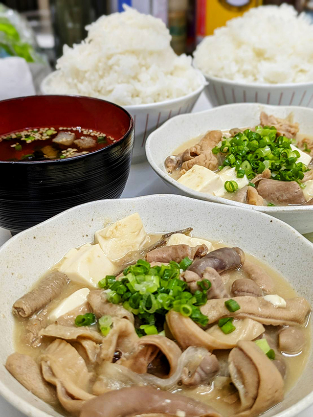 平井さん:現在は「牛ステーキ丼定食」「ホルモンみそ煮込み定食」、そして新しく加わった「だご汁高菜焼飯定食」の3種類をご用意しています。特に、「だご汁高菜焼飯定食」は、熊本の郷土料理である「だご汁」と阿蘇産の高菜を使った焼飯という、まさに熊本を凝縮したセットになっています。地元の方はもちろん、観光で来られた方にもぜひ味わっていただきたい自慢の定食ですね。